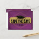 Parabéns para você e seu formando! Compartilhe com sua família e amigos que há uma formatura no futuro. Design moderna elegante e na moda com ouro falso e roxo. Boné de formatura acentuado por um design estilo logotipo. Olhos pegos e ousadia em busca dos formandos modernos de hoje.