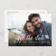 Anuncie sua data de casamento para sua família e amigos com o cartão-postal da foto elegante. O texto do roteiro de tendências sobre o topo da foto é um toque moderno. O backside oferece texto personalizado para você adicionar mais detalhes do casamento.