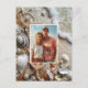 Salve o cartão postal Date com sua foto favorita. Lindos conchas tropicais, estrelas, madeira seca, pérolas em uma praia arenosa. Perfeito para o casamento de destino.