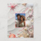 Salve o cartão postal Date com sua foto favorita. Lindos conchas tropicais, estrelas-do-mar cor-de-rosa, e pérolas rosa e branca numa praia de areia branca. Perfeito para o casamento de destino.