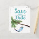 Save The Date Tropical Paradise - Apresentando uma rede de hammock listrada na vintage pendurada num Noivado de casamento/palmeira ou na arte de poster de celebração geral.