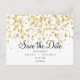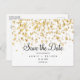 Este simples e bonito cartão de salve a data apresenta elegantes estrelas douradas caindo. O verso tem detalhes adicionais de salve a data, incluindo o site do seu casamento, com o seu endereço de devolução e espaço para o endereço do destinatário. Criado por Thisisnotme©
