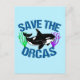 Salve as Orcas com uma baleia assassina legal e um texto azul da meia-noite para um amante de os animais marinho. Bonito coral verde e roxo decora os lados deste design de oceano. Os Blackfish devem ser protegidos.