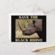 Uma aproximação de um Rinoceronte Negro com as palavras Salvar o Rinoceronte Negro ao seu redor.