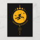 Samhain designs com uma lua de cheio laranja. Bruxa numa vassoura com um gato e uma lanterna e morcegos. Abaixo de uma teia laranja e o texto "Samhain Blessings".