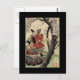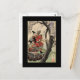 Cartão Postal Samurai Exibindo Blossomas de Cereja por volta de