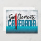 San Clemente, design de surfe na Califórnia. Uma prancha vermelha com texto azul e turquesa - tema surfista tipografia.
