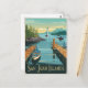 Escapar à beleza tranquila das Ilhas San Juan com este cartão postal estilo vintage. Apresentando paisagens exuberantes, águas espumantes e um charme litorâneo sereno, esta design captura a essência idílica desta joia noroeste do Pacífico. Perfeito para colecionadores, viajantes, ou como guardiã, este cartão postal celebra o eterno do paraíso da ilha de Washington.