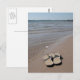 Personalize as sandálias de verão no cartão postal da praia com sua própria mensagem pessoal. Este postal personalizado apresenta uma fotografia natural de dois chinelos numa praia arenosa ao lado do lago Michigan. Quase te faz sentir que você está de férias só olhando para ele!