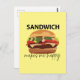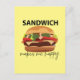 Sanduíche me torna um cartão-postal feliz projetado por Nisha Prabhu. Imagem gráfica de sanduíche deliciosa e deliciosa com tipografia divertida. Envie uma fatia de felicidade com nosso cartão postal 'Sanduíche me faz feliz'! Este cartão postal encantador é uma forma perfeita de iluminar o dia de alguém com uma mensagem divertida e um design encantador. Quer você seja um amante de sanduíche ou conheça alguém que seja, este cartão postal certamente trará um sorriso para a cara deles. Compartilhe a alegria de um bom sanduíche com este cartão-postal divertido e peculiar que é perfeito para enviar desejos calorosos, partilhar uma receita ou simplesmente espalhar alguma alegria. Deixe seu amor por sanduíches brilhar com este cartão-postal adorável!