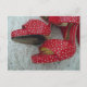 (vários produtos selecionados)um close-up de um par de sapatos vermelhos de bolinhas de salto alto.
