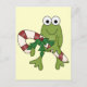 camisetas, canecas, cartões, adesivos, ímanes, chaveiros e outros roupas de férias com um sapo verde giro com uma grande bengala doce.