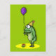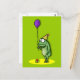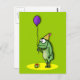 Engraçado sapo de desenho verde com manchas na barriga. Vestindo um chapéu de festa amarelo com pontos cor-de-rosa e punho e segurando um balão roxo, ele está pronto para um bom momento numa festa de aniversário fantástica! Arte digital original de Taylor Addams.