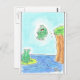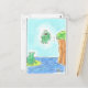 Cartoon de um sapo fazendo uma bola de canhão em um lago