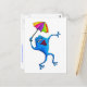 Cartão Postal Sapo de Cantor Azul com Guarda-chuvas