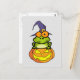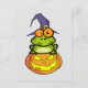 Este cartão-postal bonitinho do Halloween apresenta um sapo de desenho animado empoleirado em uma abóbora de jack-o-lanterno, vestindo um chapéu de bruxa, tudo pronto para a festa do Halloween!