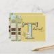 O sapo de ponto bonito com os olhos de botão salta sobre um monograma b decorado com stripe escallop e fita trim e um nome de etiqueta.