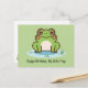 Um cartão de aniversário verde com uma ilustração de um sapo fofo em seu lago e texto personalizável abaixo! Pode ser perfeito para enviar a uma criança ou amigo que ama animais Kawaii e natureza!