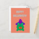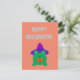 Halloween! Sapo de Halloween bonito com Jack-o-Lanterna e chapéu de bruxa