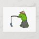 Cartão Postal Sapo na Pedra Pescando com Cana de Pescar e Peixe