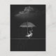 Cartão Postal Sapo preto e branco bobo com guarda-chuva na chuva