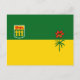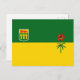 Esta design apresenta a bandeira da província canadense de Saskatchewan. Apresenta bandas horizontais de verde e amarelo: diz-se que o verde representa as zonas arborizadas pelo norte da província e que o amarelo representa campos de grãos na região meridional. Em direção à direita está uma ilustração de um lírio prairie, que é uma flor nativa do norte-americano, e em direção à esquerda está o casaco de braços de Saskatchewan. Cerca de metade da população da província vive nas duas maiores cidades, Saskatoon e a capital provincial Regina.