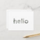 Uma simples saudação de texto de saudação, cheia de uma fotografia de papéis de carta, constitui esta design limpa e moderna.