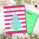Mude seus desejos de Natal com este moderno design de natal striped. Ainda usando as cores sazonais tradicionais em diferentes matizes. A árvore azul tem decorações vermelhas penduradas nela. Verde, rosa e branco. Há espaço para a sua mensagem de feriado no verso com a palavra "Amor" que pode ser apagada se não a quiser usar. Saudações de Natal modernas e simples.