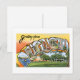 Lembras-te das longas viagens de estrada quando eras criança? Seu irmãozinho não pararia de perguntar, "Nós já estamos lá?" Viva a sua infância com este cartão de posto clássico de excelente de Augusta. Retro e incrível, ele apresenta os famosos marcos da cidade de Jardim