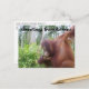 Orangutan na floresta tropical de Kalimantan, Indonésia. Krista Orangutan aproveitando sua dieta vegetariana na floresta perto de Pangkalan Bun na ilha comumente conhecida como Borneo. As vendas deste cartão postal apoiam o resgate e a reabilitação de orangotangos órfãos. Estes macacos excelentes são uma espécie ameaçada.