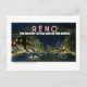 Lembras-te das longas viagens de estrada quando eras criança? Seu irmãozinho não pararia de perguntar, "Nós já estamos lá?" Viva a sua infância com este cartão de posto clássico de excelente de Reno. Retro e incrível, ele apresenta os marcos mundialmente famosos da maior cidade do mundo.