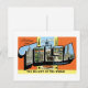 Lembras-te das longas viagens de estrada quando eras criança? Seu irmãozinho não pararia de perguntar, "Nós já estamos lá?" Viva sua infância com este cartão de posto clássico de excelente de Tulsa, Oklahoma. Retro e incrível, ele apresenta os marcos mundialmente famosos da Capital Petrolífera do Mundo.