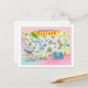 Saudações de Montana vintage reprodutora postal com um mapa estadual mostrando cidades e atrações, a bandeira estadual, pássaro e flor, por volta do final dos anos 50 ou início dos anos 60.
