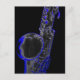 Imagem saxofone em preto-e-branco com destaques azuis profundos, sobre fundo preto. Excelente para amantes sax!