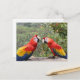 Foto de dois cacarejos na natureza, sentados em uma fonte e comendo alguma fruta. Esta foto mackaw foi tirada na Costa Rica tropical. As penas vermelhas, amarelas e azuis brilhantes do papagaio são brilhantes contra o fundo das árvores tropicais e campos de flores e culturas. Este casal de pássaros bonitinho faria um presente de Dia de os namorados excelente e pode ser facilmente personalizado e impresso em vários produtos diferentes. Celebre o amor e o romance no mundo dos pássaros com estas fotos comoventes de mackaws!
