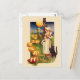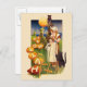 Surpreenda sua família e amigos com um charmoso cartão vintage de Halloween que apresenta uma mulher com um gato e uma coruja num campo de Halloween, pintado pelo ilustrador americano Samuel Loren Schmucker. com!