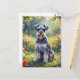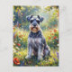 A charming schnauzer sits peacefully in a sunlit meadow filled with vibrant wildflowers.