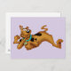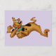 Envie um toque de nostalgia com este cartão postal lúcido com Scooby-Doo numa pose relaxada de deitar para baixo. Perfeito para fãs do clássico desenho animado, este vibrante e encantador design captura a personalidade amorosa do filhote favorito da Mystery Inc. de todos.