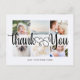 Script com Coração Obrigado 6 fotos Universal Cartão postal. 6 fotos personalizadas da família Universal Cartões de cumprimentos com uma colagem de fotos elegante com 6 imagens personalizadas, sua mensagem de cumprimentos em fonte de letra manuscrita elegante, seu nome, data, ano, mensagem no verso em uma fonte sans serif moderna e simples.