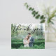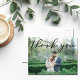Simplesmente chique e sofisticado, nossa coleção de casamento de inverno minimalista apresenta tipografia cursiva elegante e uma fotografia completa do seu evento moderno. Agradeça aos seus convidados com um adorável cartão postal de agradecimento de casamento com sobreposição de script preto simples sobre a foto romântica de recém-casados.