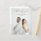 Sobreposição de "agradecimento" com script de caligrafia moderna, cartão postal de agradecimento de foto de casamento. Características, tipografia preta em fundo branco e modelo de foto única na frente.