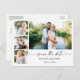 Anunciamento de Noivado de Casamento Fotográfico 4, Manuscrito Mínimo Moderno, mas Elegante, Salve o Cartão-Postal de Data