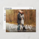 Modern Brush Script Change The Date Wedding Adiou New Date Announement Photo Casal Postcard