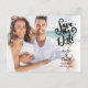 Este lindo cartão de salvar data com foto apresenta sua foto e um decorativo salvar data acima dos seus nomes, data e local.