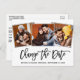 Modern Brush Script Change The Date Wedding Adiou New Date Announunciation Casal 3 Photo Postcard