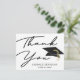 Cartão postal simples e minimalista de agradecimento de formatura em preto e branco, apresentando tipografia moderna de letra manuscrita, um chapéu de formatura preto com borla dourada e personalizado com o nome do graduado e ano de conclusão na frente. O lado oposto oferece a opção de pré-imprimir sua mensagem ou excluir o texto de exemplo para deixar a área em branco para anotações manuscritas de agradecimento. ASSISTÊNCIA: Para obter ajuda com modificação de design ou personalização, alteração de cor, transferência do design para outro produto ou se você gostaria de itens coordenados, entre em contato com o designer ANTES DE FAZER O PEDIDO através da guia de MENSAGEM do Zazzle Chat ou envie um e-mail para makeitaboutyoustore@gmail.com.