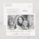 O script moderno "mudar a data" em cor dourada, com foto do casal, simples e elegante. informe aos seus convidados sobre as informações atualizadas com este anúncio fotográfico. Selecione "Clique para personalizar mais" na seção "Personalizar este modelo" para alterar a cor do script para corresponder à sua foto e ajustar a posição da foto. Ver todas as peças correspondentes na coleção