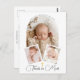 Nosso lindo cartão de agradecimento de batismo é um belo item para guardar memórias, projetado para capturar a memória preciosa do dia especial do seu bebê. Este cartão apresenta três fotos personalizadas do seu pequeno: uma foto principal exibida no centro dentro de uma moldura branca elegante, com o nome do seu bebê exibido na parte superior em uma fonte graciosa em semicírculo.