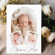 Nosso lindo cartão de agradecimento de batismo é um belo souvenir projetado para capturar a memória preciosa do dia especial do seu bebê. Este cartão apresenta três fotos personalizadas do seu pequeno: uma foto principal exibida no centro dentro de uma moldura branca elegante, com o nome do seu bebê exibido na parte superior em uma fonte graciosa em semicírculo.