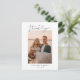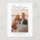Obrigado de casamento moderno e simples, seu cartão de modelo com um texto de tipografia escrito à mão com coração entre as palavras. Essa escrita casual e o espaço branco dão uma sensação simples e minimalista. Personalize este produto inserindo sua própria foto de casamento e editando a mensagem na parte traseira do cartão.